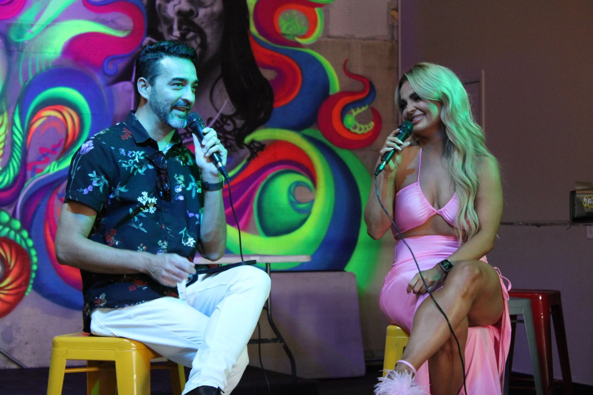 Vanessa Ruiz speaking with El Sur’s Victor Mercado during the second Las Reinas del Beauty Industry event. Photo credit: Desiree Guerrero.